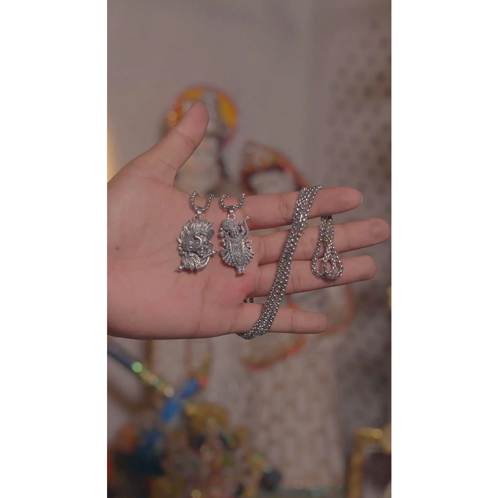 Krishna & Shreenathji Pendant with Chain – Pack of 2, Silver Alloy Religious Jewellery Combo for Men