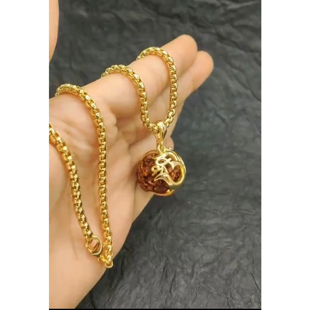 Made from durable alloy material with a stunning gold finish, the pendant chain is not only visually appealing but also strong and comfortable for regular use. The Om symbol signifies universal energy and consciousness, while the Rudraksha bead is known to boost focus, calmness, and spiritual strength.