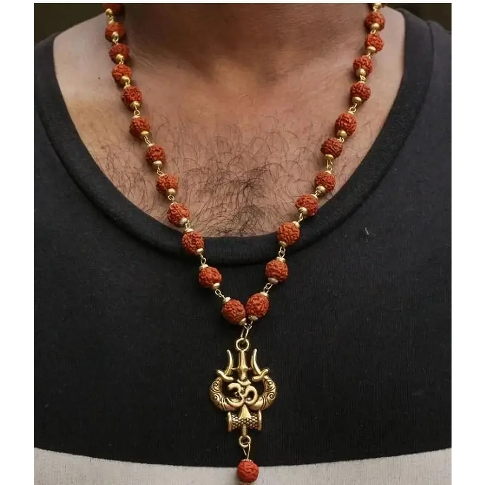 Panchmukhi Rudraksha OM Shiva Trishool Mala for Men | Spiritual Rudraksha Necklace with Trishul Pendant | Casual Religious Chain