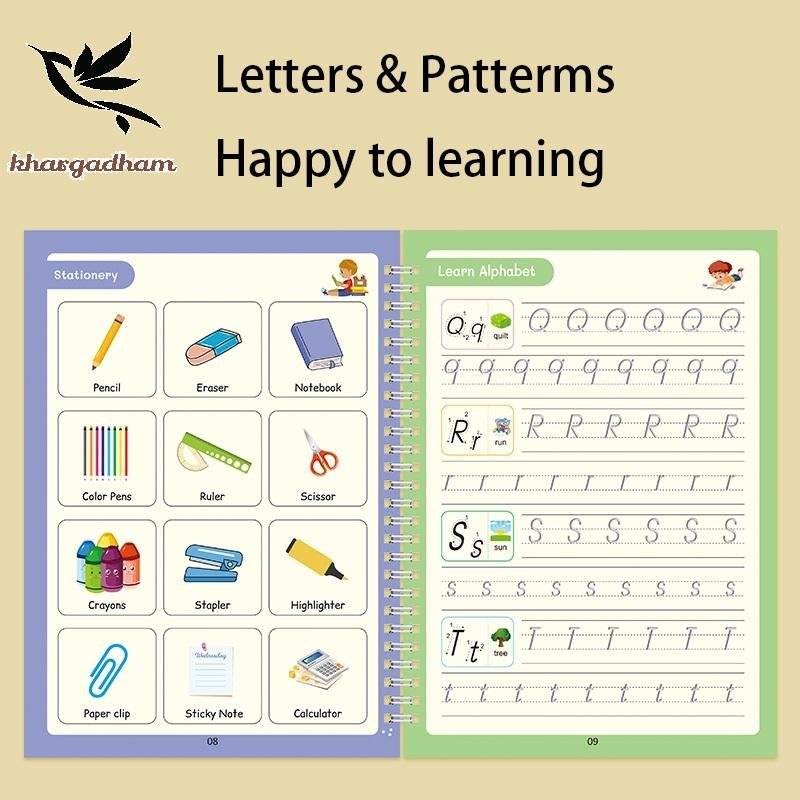 Designed for Easy Learning: The books feature grooved handwriting templates, guiding children’s hands for proper letter formation and stroke order.