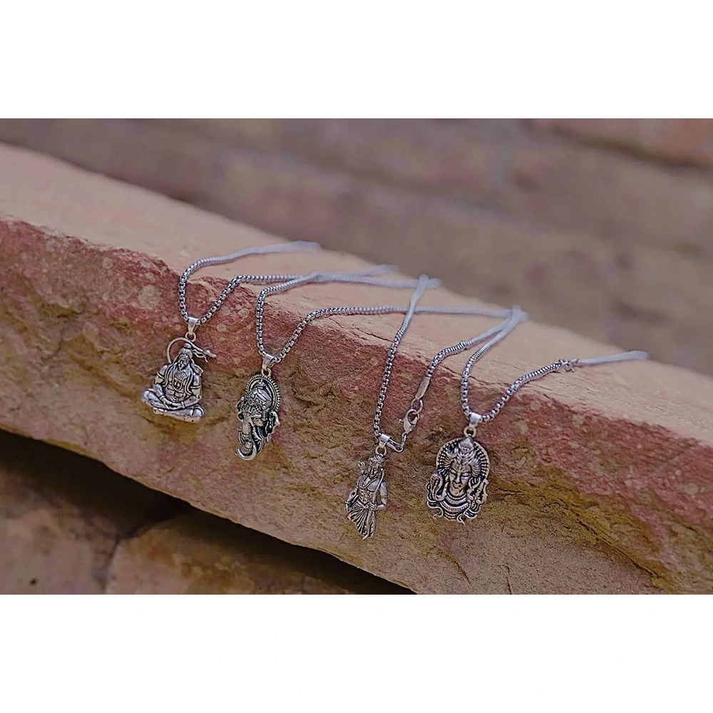 🕉️ Buy 1 Get 3 Free Pendant with Chain – Combo of 4 Spiritual Pendants in Oxidised Silver
