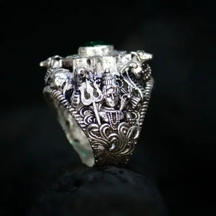 Lord Shiva Silver Ring for Men | Oxidised Mahadev Ring | Shivji Finger Ring for Spiritual Style | Casual Wear | Pack of 1