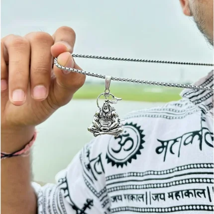 Lord Shiv Pendant with Snake | Silver-Plated Mahadev Pendant Chain for Men | Spiritual Shivji Necklace | Casual Wear Jewelry