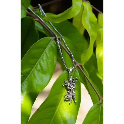 Narsimha Pendant with Chain for Men – Silver Plated Alloy Stainless Steel Spiritual Necklace | Casual Wear Hindu God Locket