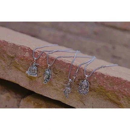 Spiritual Jewellery Pendant with Chain – Pack of 4 Oxidised Silver Alloy Combo for Men